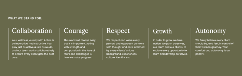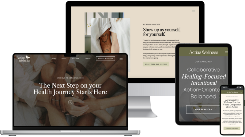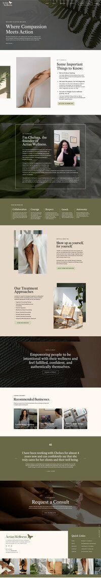 After working with the founder, Chelsea, to identify her goals, values, and client base, I found that Actias Wellness was needing a brand identity and website to:
